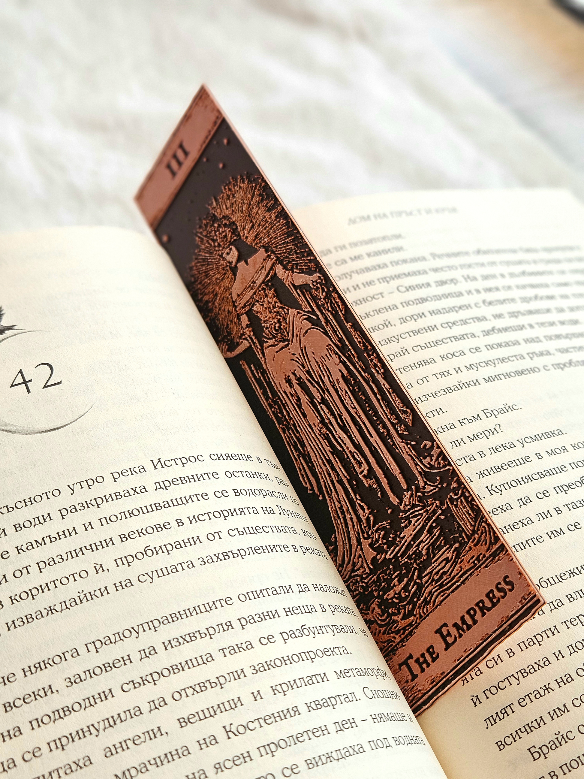 Scopri i segnalibri ispirati ai Tarocchi di Marsiglia, raffiguranti le carte III, IV e V. Ogni pezzo è un invito a sfidare il destino, unendo mistero e simbolismo con un design audace che arricchisce ogni lettura. Perfetti per chi vuole aggiungere un tocco di magia e coraggio ai propri momenti di lettura.